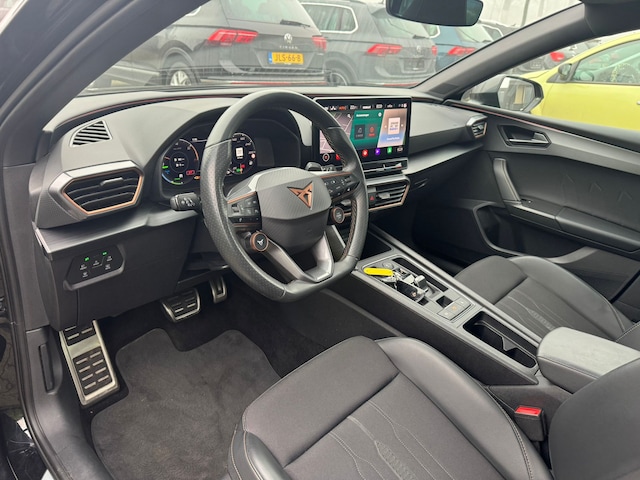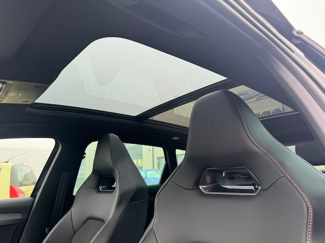 Laat u niets wijsmaken, deze CUPRA Leon Sportstourer biedt alles wat u van een auto verlangt. We weten het: benzinerijden is een dure grap. Elektrisch heeft de toekomst. Met de hybride motor van deze CUPRA Leon Sportstourer heeft u de keuze: elektrisch als het kan, benzine als het moet. Het stijlvolle lederen interieur geeft deze CUPRA Leon Sportstourer net dat beetje extra. Tijdens gure dagen is het prettig zitten in de verwarmbare voorstoelen. Pittig rijden wordt nog comfortabeler dankzij de fraaie sportstoelen. Licht en lucht komen onbelemmerd binnen als het elektrisch bediende glazen panoramadak met één druk op de knop wordt geopend. De achterklep opent automatisch met een druk op de knop. Handig als u met volle handen staat. Xenonverlichting zorgt voor een krachtige en heldere lichtbundel. In deze CUPRA profiteert u onder andere ook van: 19 inch lichtmetalen velgen, LED koplampen, adaptief dempingsysteem, zwarte hemelbekleding, donker getint glas achter en in delen neerklapbare achterbank.