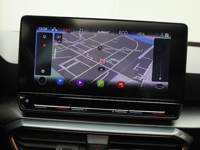 Alle functies voor een veilige en zuinige rit worden overzichtelijk weergegeven op het digitale dashboard. Met adaptive cruise control houdt de auto zelfstandig afstand tot uw voorligger. Een veiligheidsverhogende optie waarmee u comfortabel onderweg bent. Functies activeren en storingen opsporen? Bij deze auto gaat het eenvoudig via uw smartphone. Overal en altijd. Het full map navigatiesysteem en het audiosysteem (met DAB-ontvangst!) bedient u met knoppen op het stuur of met gesproken commando's. Telefoon onderweg aan de lader? Daar komt geen kabeltje aan te pas, want deze CUPRA Leon Sportstourer is voorzien van een draadloze oplaadmogelijkheid voor telefoons. Extra opties op deze auto zijn: electronic climate control, parkeersensoren achter, regensensor, keyless entry en automatisch dimmende binnenspiegel.