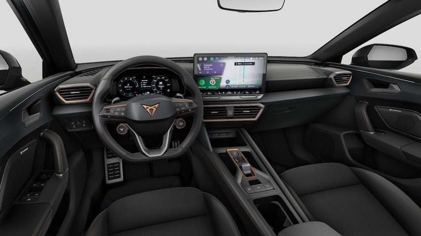 - Multifunctioneel verwarmbaar stuurwiel met start–en CUPRA–knop en schakelpaddels