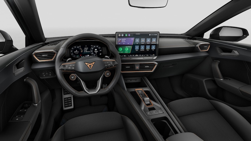 - Multifunctioneel verwarmbaar stuurwiel met start–en CUPRA–knop en schakelpaddels