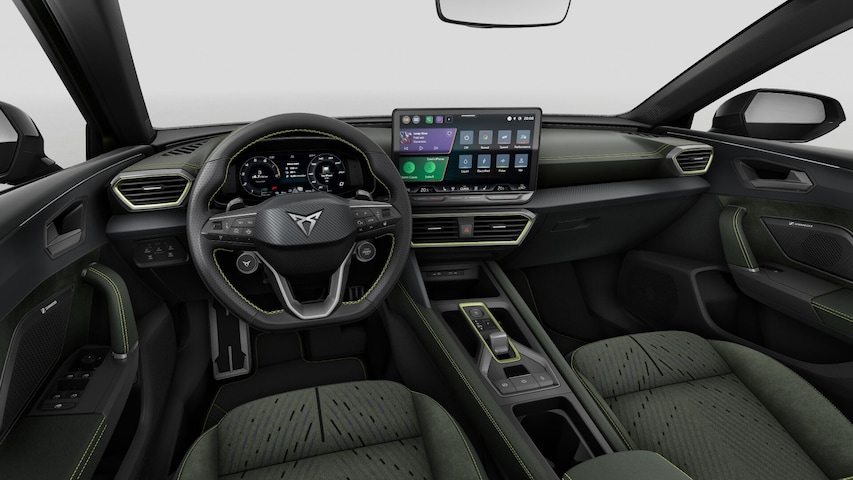 - Multifunctioneel verwarmbaar stuurwiel met start–en CUPRA–knop en schakelpaddels