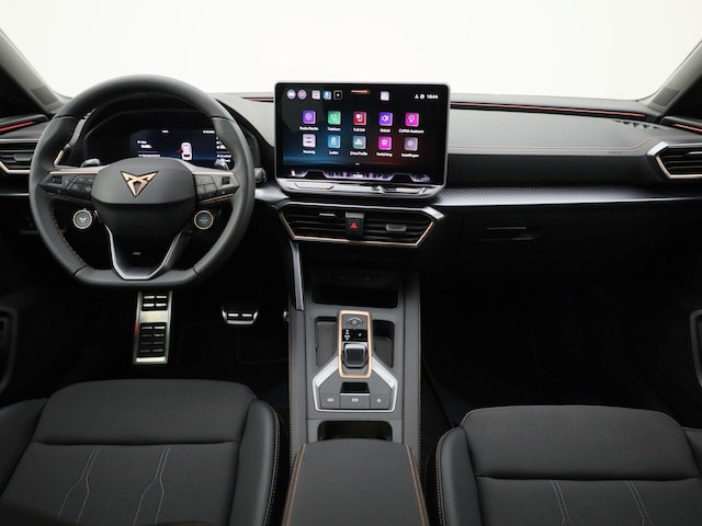 Het digitale dashboard zorgt voor een super functionele display van reisinformatie. Afstand schatten bij het achteruitrijden? Niet nodig. U weet het precies, dankzij de achteruitrijcamera. Adaptive cruise control is veilig en comfortabel. De snelheidsregelaar houdt automatisch afstand tot het voertuig dat voor u rijdt. De meest gebruikte voertuigfuncties laten zich met behulp van uw stem bedienen. Omdat u niet elke dag met een aanhanger of caravan op pad bent, is er de elektrisch inklapbare trekhaak. Ook is de CUPRA uitgerust met: connected drive services, electronic climate control, draadloos opladen, DAB ontvangst, regensensor en keyless entry.
