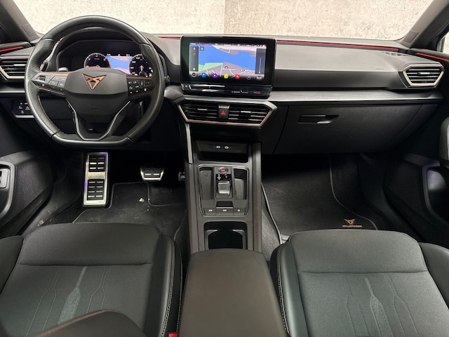 Van uw nieuwe auto verlangt u rijplezier, maar ook optimaal comfort en veiligheid. Daarom is de CUPRA Leon de auto die u zoekt. De elektromotor zorgt voor snel en traploos optrekken bij ieder stoplicht. Een van de vele voordelen van deze hybride auto. Scherpe bochten, pittige acceleraties? In de sportstoelen blijft u altijd in positie. Als u blij wordt van licht en ruimte dan zult u zeker genieten van het elektrisch bediende panoramadak. In deze auto profiteert u onder andere ook van: 19 inch lichtmetalen velgen, LED koplampen, adaptief dempingsysteem, zwarte hemelbekleding, dakspoiler en donker getint glas achter.