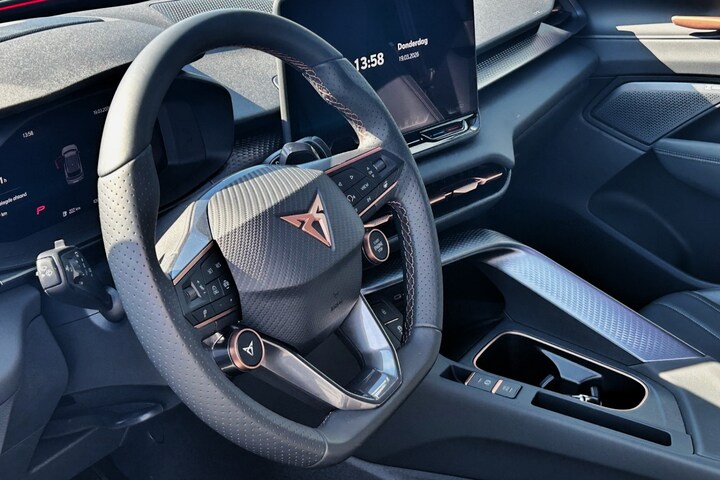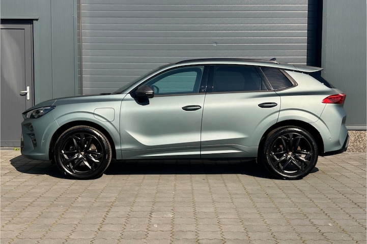 Schitterend samengestelde 272pk sterke hybride Cupra Terramar America's Cup met slechts 1064km en een elektrisch bereik tot maar liefst 120km met snellaadfunctie! Deze Cupra is prachtig uitgevoerd in Enceladus Grey Matt met mooie matzwarte 20" lichtmetalen velgen en een zwart lederen sportinterieur, verder is deze Terramar o.a. voorzien van elektrische stoelverstelling met geheugen, matrix LED koplampen en LED achterlichten, adaptief sportonderstel, keyless entry, alarmsysteem, navigatie, bluetooth, DAB en multimedia, Sennheiser audio, draadloze telefoonlader, Head-up display, PDC voor en achter met achteruitrijcamera en parkassist, lane assist, climate control, adaptieve cruise control, stoelverwarming, verwarmd stuurwiel, wegklapbare trekhaak, enz. enz. Zo goed als nieuwe auto met 2 sleutels en 2 laadkabels. De prijs voor deze PHEV is rijklaar.