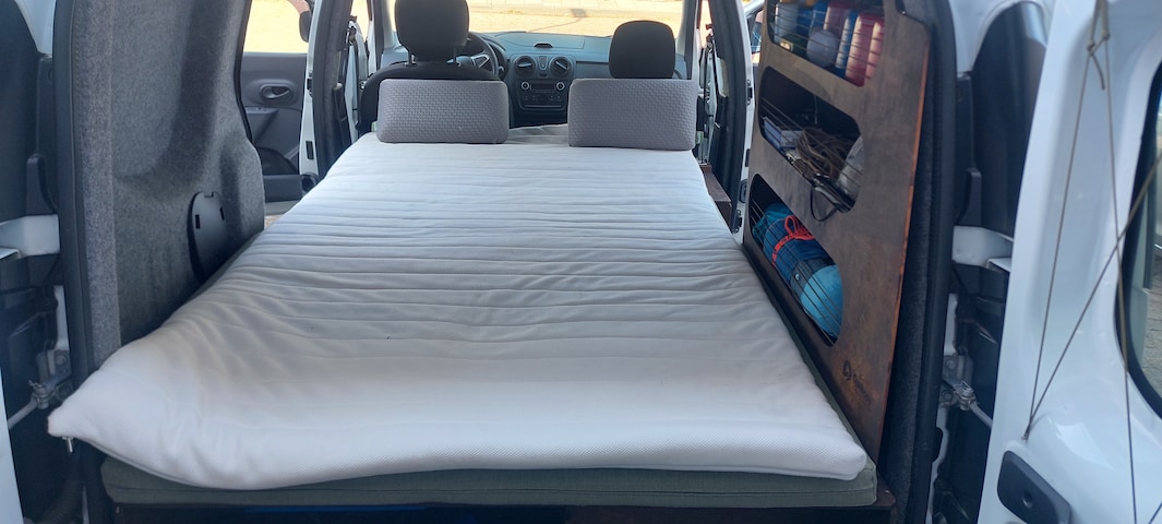 Zeer efficiënte minicamper die je ook als auto kan gebruiken en met twee mensen lekker tijdens vakantie kan toeren incl. hond. Vanwege gezinsuitbreiding is onze minicamper te klein geworden. Door zonnepanelen en watertank van 20liter kan je off-grid op vakantie. Omgebouwd door Outbase.