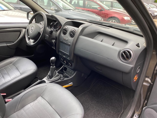 U rijdt gemakkelijk, comfortabel en zonder zorgen met deze Dacia Duster. De aandrijving van deze Dacia wordt verzorgd door een viercilinder motor en een handgeschakelde zesversnellingsbak. De lederen bekleding benadrukt de luxe uitstraling van deze auto. Deze Dacia Duster legt bestuurder én bijrijder compleet in de watten met de verwarmbare voorstoelen. Tot de uitrusting van deze Dacia behoren ook 16 inch lichtmetalen velgen, aluminium dakrailing, extra getint glas, in delen neerklapbare achterbank, elektrisch bedienbare en verwarmde buitenspiegels en elektrisch bedienbare ramen achter.