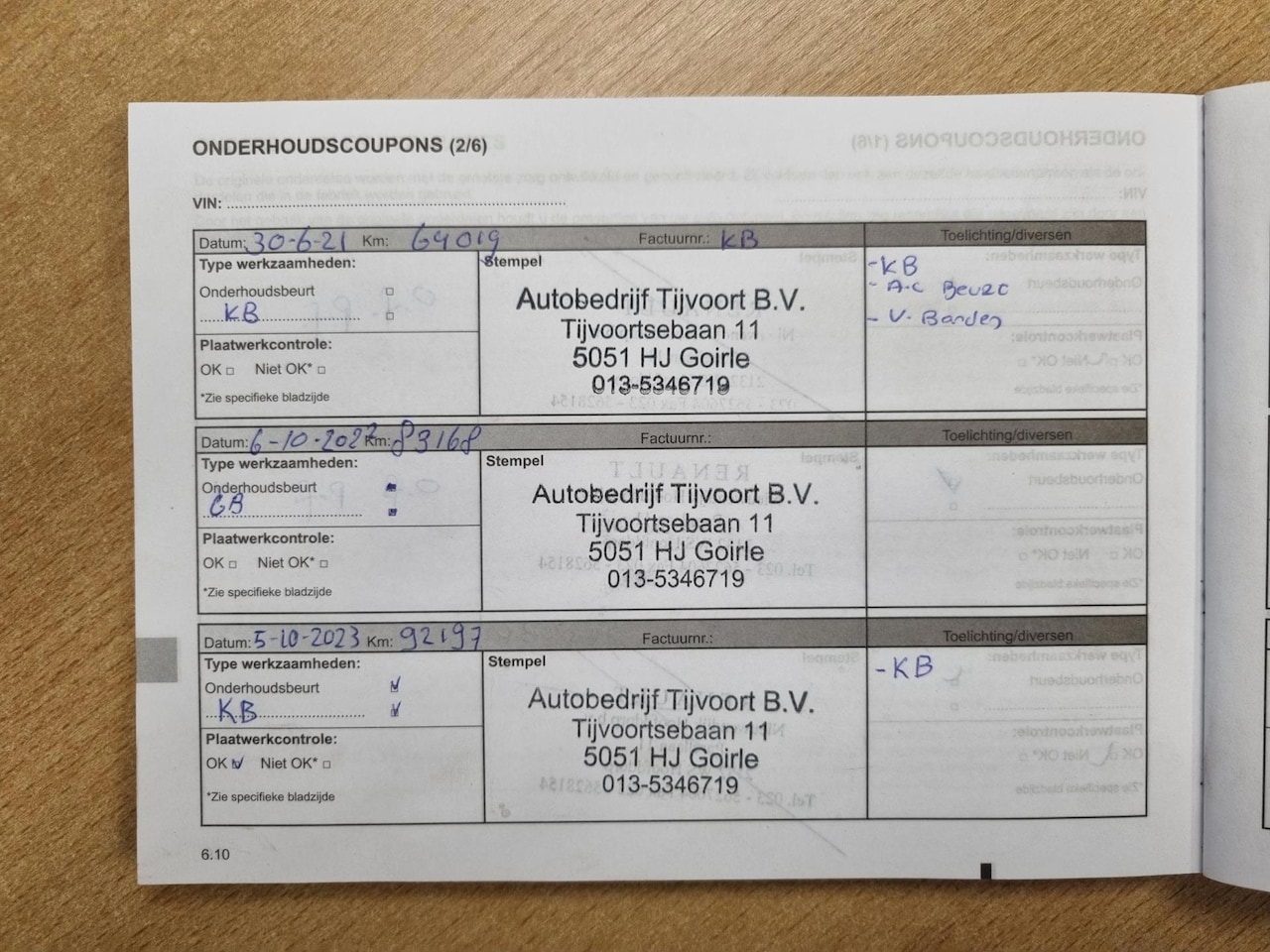 APK | Bij aflevering |