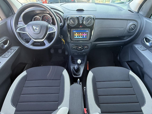 Kom maar, kom maar, kom maar... ho! Prettig hoor, zo'n achteruitrijcamera. Gemakkelijk en veilig is de bediening het audiosysteem en het full map navigatiesysteem met knoppen op het stuur. De audio-kwaliteit is geweldig, dankzij de DAB-ontvangst. U bedient de cruise control eenvoudig zonder uw handen van het stuur te halen. Het hele jaar door zorgt airconditioning voor een prettige temperatuur. De Dacia is standaard voorzien van: lederen stuur, centrale deurvergrendeling met afstandsbediening, bagage afdekhoes, boordcomputer en lederen versnellingspook.