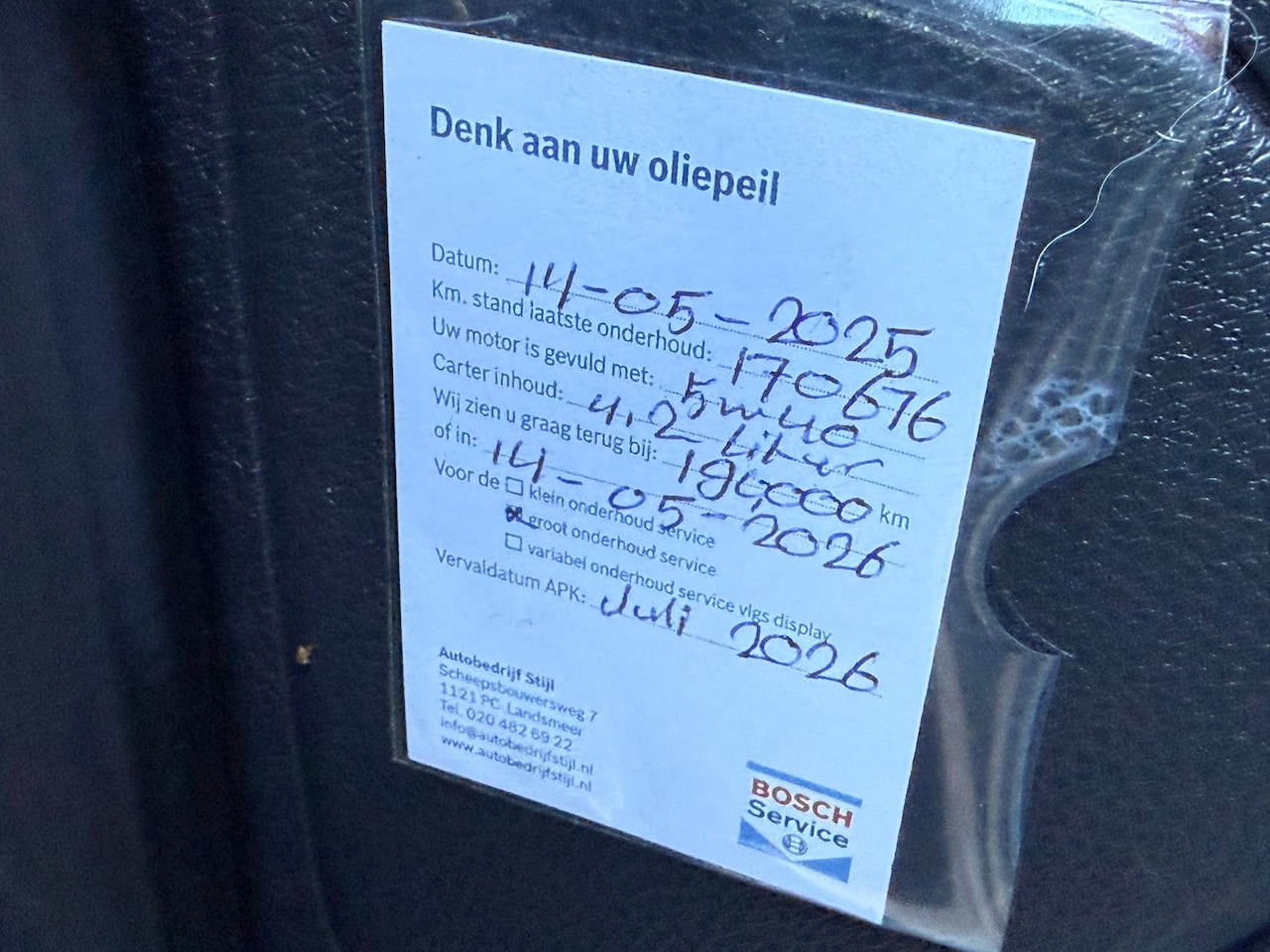 | APK | Bij aflevering |