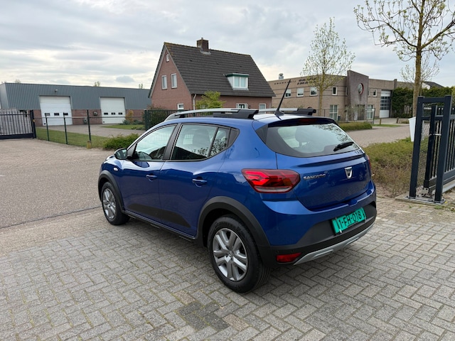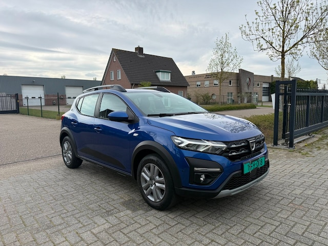 Luxe Dacia Sandero Stepway. O.a. voorzien van Apple CarPlay, automatische airco, cruise control, stoelverwarming, achteruitrij camera, parkeersensoren voor + achter en dakrails. De Stepway is de stoere uitvoering van de Sandero.