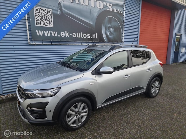 Dacia Sandero Stepway 1.0 TCe 100 Bi-Fuel Essential LPG-G3 origineel fabriek-af. Voorzien van veel luxe zoals: Apple Carplay / Auto Android, LED koplampen, Achteruitrijcamera, DAB+ radio, Bluetooth telefoon, Bluetooth streamen, USB, Stuurbediening, Trekhaak, Parkeersensoren voor + achter, Cruise-control, Airco ECC klimaatcontrol, Isofix, Dakrail, Mistlampen, Donkere ramen achter, Elektr.ramen voor+achter, Elektr.spiegelverstelling, Half hoge instap, enz.enz.