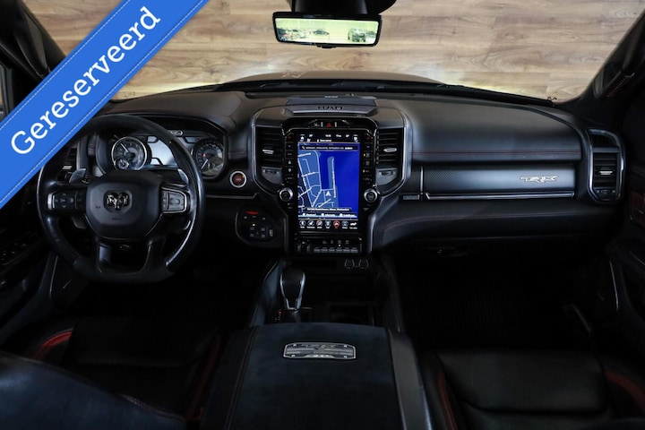 Deze Dodge Ram beschikt over alle opties, denk aan: Vol lederen interieur met contrast stiksels, TRX benoeming in de stoelen, Stoelverwarming voorin en achterin, Stoelventilatie voorin en achterin, Stuurwiel verwarming, Head-up Display, Glazen Schuif/kanteldak, Elektrisch verstelbare stoelen met geheugen, Adaptieve Cruise control, Lane assist, Trekhaak, Keyless Entry, Multifunctioneel stuurwiel, Apple Carplay, Schakelmogelijkheid aan stuurwiel, Full Map navigatie systeem, Parkeersensoren voor + achter, Achteruitrijcamera, Draadloos telefoon opladen, Bluetooth audio, Harman & Kardon geluidsinstallatie, Binnenspiegel digitaal, Dodehoekdetectie etc.