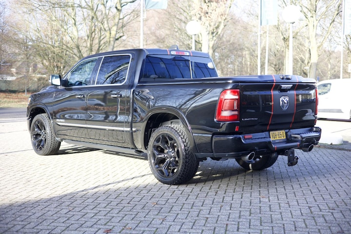 Deze Dodge RAM 1500 Limited wordt aangeboden inclusief afleverkosten, garantie en aanvullende voorzieningen zoals een trekhaak en een afdekking voor de laadbak.