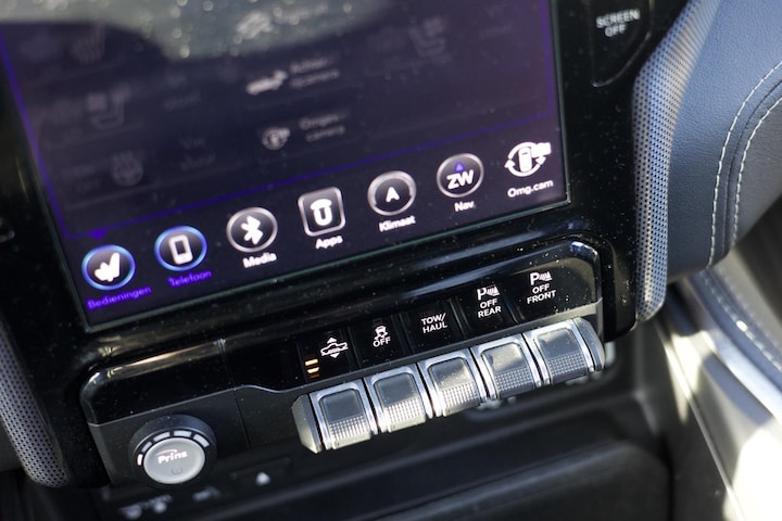 Op het gebied van rijhulpsystemen is deze RAM uitgerust met adaptieve cruise control, rijstrookassistentie en een 360-graden camerasysteem, wat het manoeuvreren en rijden in verschillende omstandigheden vergemakkelijkt. Het audiosysteem van Harman Kardon zorgt voor een hoogwaardige geluidsweergave. Verder is de auto voorzien van adaptieve LED-koplampen en side steps voor een gemakkelijke instap.