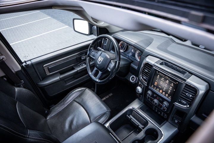 Onder de kap ligt de krachtige V8 die zorgt voor serieus vermogen en dat typische Amerikaanse geluid. In combinatie met de automatische transmissie rijdt deze Ram soepel, sterk en relaxed, of je nu door de stad rijdt of lange afstanden maakt.