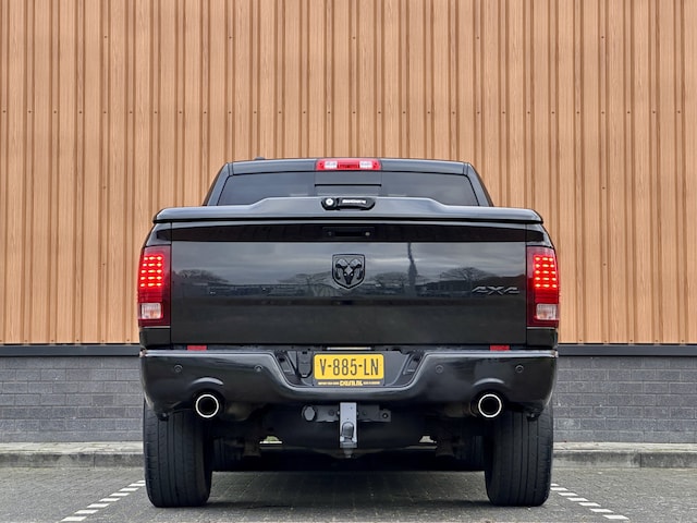 Met zijn dynamische eigenschappen belooft deze Dodge Ram 1500 u een heleboel rijplezier. Hij is ontwikkeld op een geavanceerd onderstel en biedt altijd een veilig weggedrag. De uitstekende prestaties van deze auto komen van de achtcilinder benzinemotor en de automatische transmissie. De vierwielaandrijving is niet alleen heel prettig op onverharde wegen en nat wegdek, maar ook als u de bergen in gaat, bijvoorbeeld op wintersport. Van binnen is deze Dodge Ram 1500 mooi uitgevoerd met een classy lederen interieur. Bij de complete uitrusting van deze auto hoort ook stoelverwarming. Geniet van het uitzicht naar buiten door het riante glazen panoramadak. Hoe koud het buiten ook is, het verwarmbare stuurwiel brengt uw handen en vingers snel weer op temperatuur. Natuurlijk behoren 20 inch lichtmetalen velgen, LED-dagrijverlichting, trailer assistent, getint glas, in delen neerklapbare achterbank en side-Steps ook tot de uitrusting van deze complete auto.