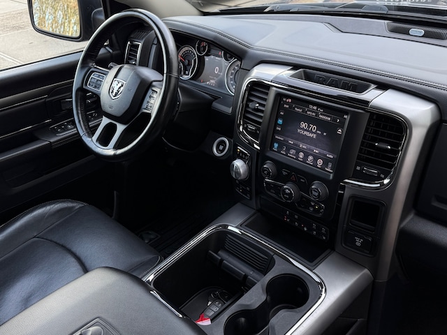 'Boem is ho'? Niet met deze parkeerhulp met achteruitrijcamera. U ziet achter net zo goed als voor en krijgt een duidelijk geluidssignaal! Niet alleen heerlijk rijden maar ook subliem luisteren, dankzij het Bose audiosysteem. Een constante snelheid is goed voor de ontspanning onderweg, en de cruise control zorgt ervoor. Een handige optie is de keyless entry: de Dodge Ram 1500 opent automatisch alle sloten zodra u dichtbij bent. Met de aanwezige airconditioning bepaalt u zelf het binnenklimaat. Met Bose-audioinstallatie, navigatiesysteem, lederen stuur, isofix-aansluiting, usb-aansluiting en centrale portiervergrendeling is deze auto helemaal compleet.