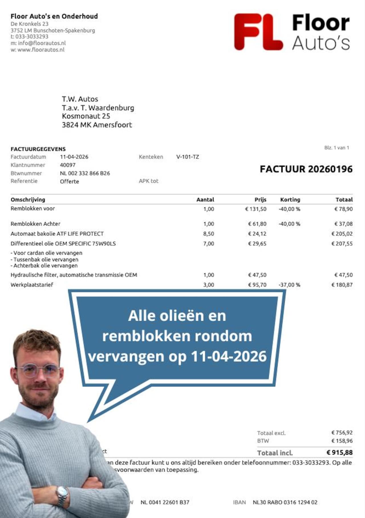 | BTW auto | Ja, excl. BTW |