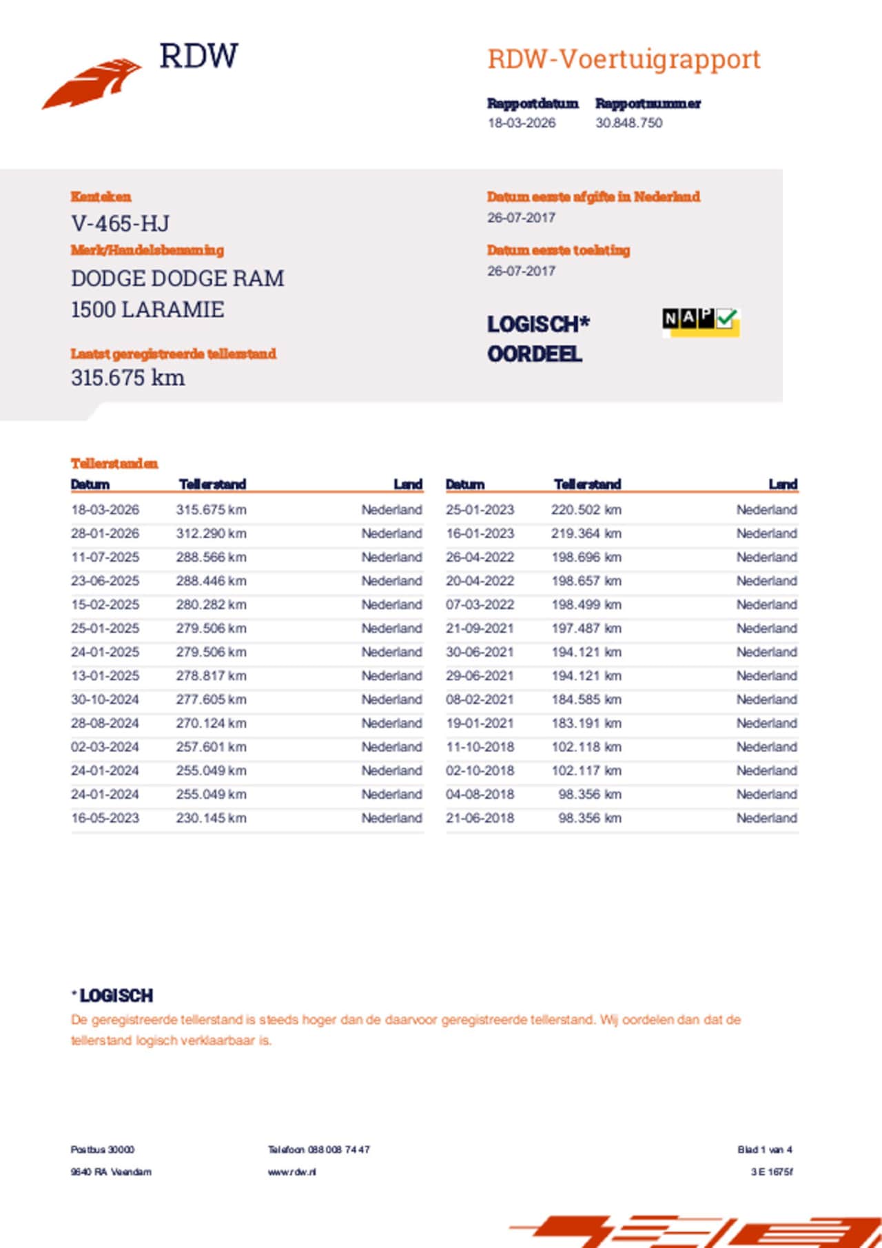 | Kilometerstand | 315.675 km |