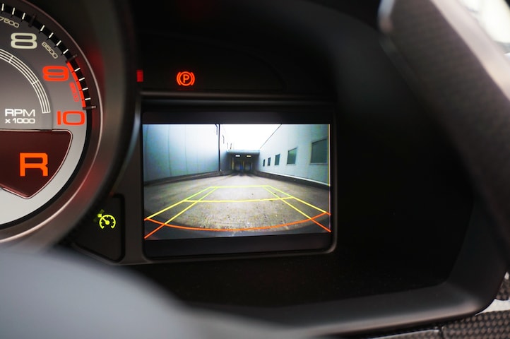 Het interieur is voorzien van carbon racestoelen, gecombineerd met een 'Nero' alcantara hemelbekleding en een rode toerenteller, wat perfect aansluit bij het sportieve karakter van de Speciale Aperta.