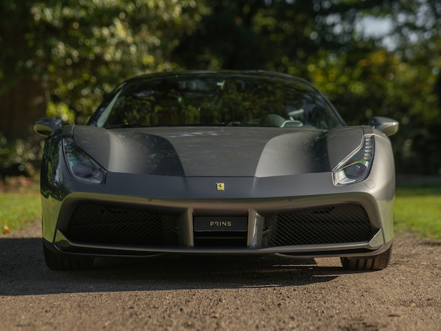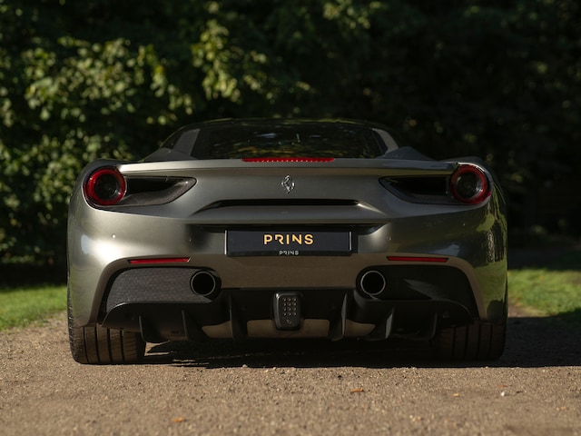 Ferrari staat symbool voor snelheid en emotie. En precies dat laatste is waar deze 488 GTB in uitblinkt. De beeldschone creatie laat zien dat een supercar niet altijd de beste of de snelste hoeft te zijn. Zolang het zijn ziel maar blootlegt. De grijze koets is niet zomaar grijs, het heet Grigio Ferro en is een Historical Color. Met andere woorden: er zit nogal een historisch verhaal achter de elegante tint. De meest exclusieve exoten uit Maranello kregen dezelfde kleur, waaronder de legendarische Ferrari 250 GT/L Berlinetta Lusso by Scaglietti, Ferrari 275 GTB 6C RHD, Ferrari 365 GTB/4 Daytona en Ferrari 330 GTC. Om maar even een illuster rijtje op te noemen… Onze Ferrari 488 GTB sluit zich daar moeiteloos bij aan. Niet in de laatste plaats vanwege de rest van de aankleding: voorzien van Atelier Special Equipment zijn de sideskirts, het dak én de engine compartment lid gespoten in Nero Daytona Lucido. Kennelijk vond de oorspronkelijke eigenaar extra ruimte voor exclusiviteit, want hij liet de engine cover en rear air-ducts uitvoeren in peperduur carbon. Verder staat de 458 Italia opvolger op 20 inch Forged Diamond wielen met daarachter Giallo remklauwen, en komt datzelfde geel terug in de Scuderia Ferrari Shields op de voorste schermen. Afgezien van de afwerking, zien de matzwarte uitlaateindstukken er hetzelfde uit als op elke andere 488. Echter, zo klinken ze niet…