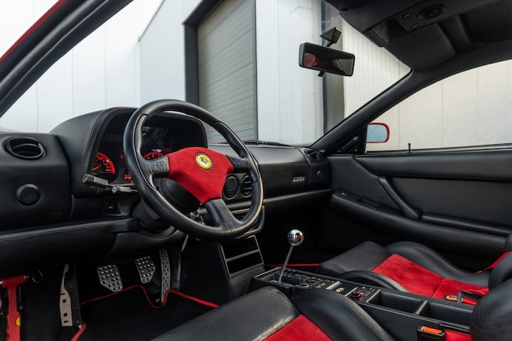 Wat de F512M zo bijzonder maakt, is de combinatie van rauwe V12 emotie met subtiele maar doordachte verbeteringen. De atmosferische 4,9 liter platte V12 levert 440 pk en voelt merkbaar scherper en levendiger aan dan zijn voorgangers. Ferrari wist het gewicht te reduceren, de aerodynamica te verbeteren en het onderstel verder te verfijnen. De open koplampen, uniek voor de F512M binnen de Testarossa familie, geven hem een agressievere en meer klassieke uitstraling. Het interieur is luxueus maar functioneel, met dat typische jaren 90 Ferrari karakter waarin leer, aluminium en mechanische beleving centraal staan.