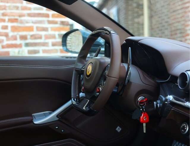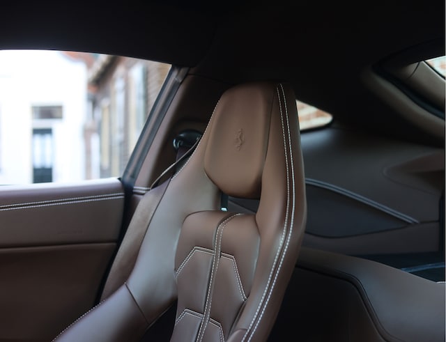 In het interieur vinden we een volledig met Cioccolato lederen bekleed meesterwerk. De carbon fiber racing seats zitten geweldig en bieden optimale steun wanneer u de grenzen opzoekt. Door het gehele interieur zijn witte contrasterende stiksels te vinden en de bekende Cavallino’s zijn in de hoofdsteunen gestampt. Ieder oppervlak is op het hoogste niveau afgewerkt. Zo is er een lederen binnenhemel en zijn de tapijten volledig uitgevoerd in Cioccolato Alcantara. Om het af te maken zijn de gordels uitgevoerd in Marroni en zijn alle accenten uitgevoerd in carbon.