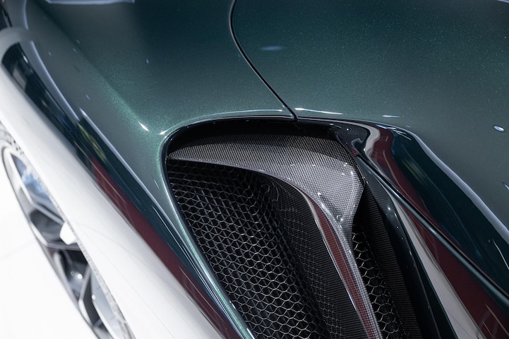 Deze Ferrari SF90 Spider is nieuw door Kroymans geleverd. Sindsdien heeft de auto slechts één eigenaar gehad, die deze fraaie SF90 Spider in de stijlvolle kleur Verde Zeltweg heeft samengesteld. Aan de binnenzijde is gekozen voor een Two Tone interieur, waarbij een combinatie is gemaakt tussen Terra Bruciata en Iroko. De interieurdelen zijn afgewerkt met contrasterende stiksels in Verde, het Ferrari logo op de hoofdsteunen is daarbij ook in Verde geborduurd. Een uniek detail aan deze SF90 is te vinden in het interieur; alle aluminium interieurdelen die standaard zijn uitgevoerd in Grigio NART zijn op dit exemplaar uitgevoerd in de exterieurkleur Verde Zeltweg.
