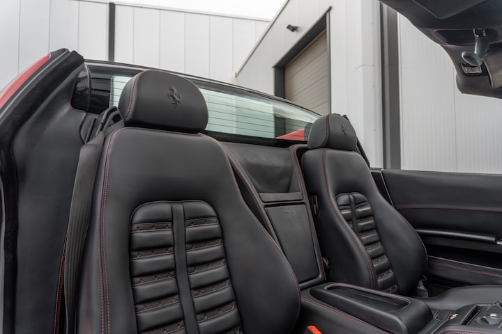 Onze 575 Superamerica is uitgevoerd in het iconische 'Rosso Corsa' met een 'Nero' lederen interieur, afgewerkt met 'Rosso' stiksels. Verder is hij voorzien van zilveren BBS velgen en rode remklauwen, een traditionele uitvoering, maar daarom dus ook erg gewild!