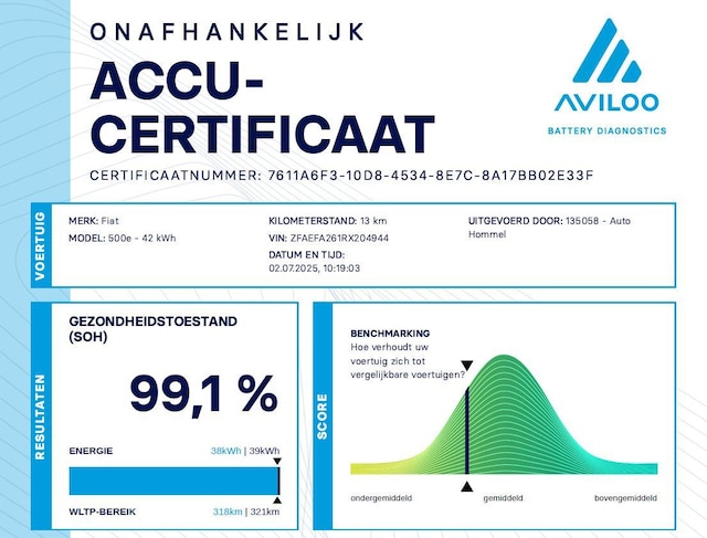 Deze Fiat 500 Abarth is uitgerust in de 42 kWh uitvoering.