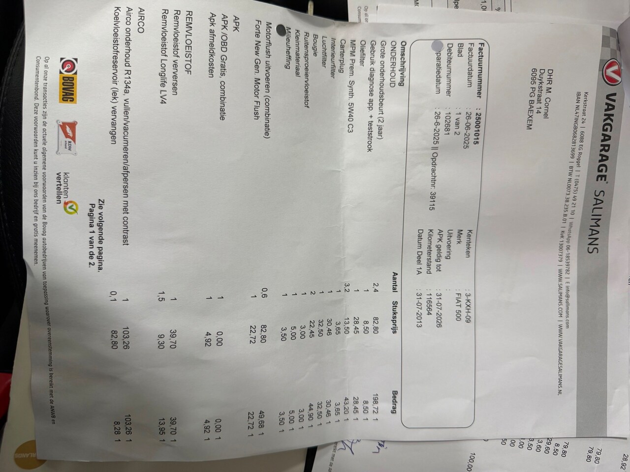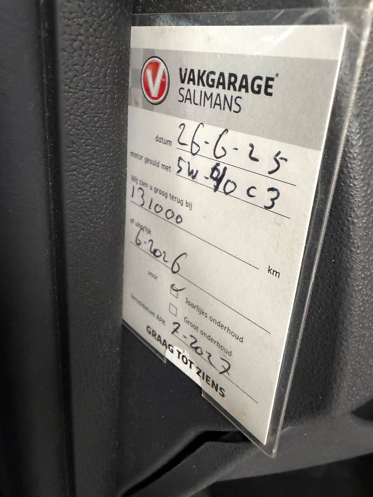 | APK | Bij aflevering |