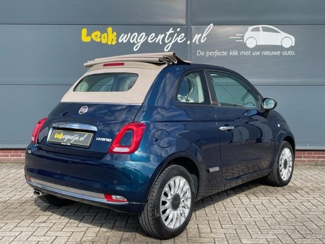 Zomerse en zuinige Fiat 500 Cabrio met soft hybride motor (benzinemotor met elektrische ondersteuning zonder stekker). Zes versnellingen. Fraaie kleurencombinatie van diepglanzend blauw metallic met ivoorkleurige elementen in het interieur. Luxe uitvoering met o.a. airco, carplay (weergave van functies smartphone op het centrale touchscreen), cruise control, regen- en lichtsensor, mistlampjes en parkeersensoren. Zie de optielijst en de foto's. Complete onderhoudshistorie aanwezig.