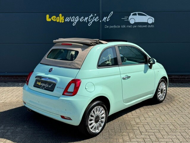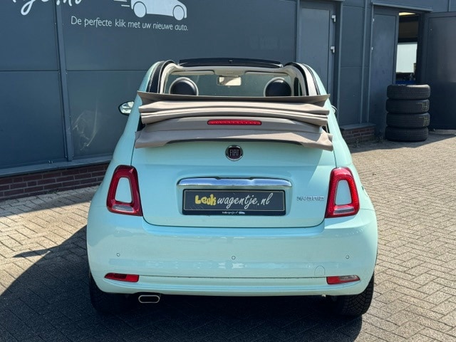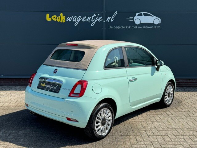 Fris kleurtje hé, dat mintgroen. De beige elektrische kap en de ivoorkleurige elementen in het interieur maken het plaatje helemaal áf! Bedenk dan dat deze Fiat 500 Cabrio Hybrid (geen stekker) nog geen 25.800 km op de teller heeft staan. Net zo fris als het kleurtje dus. En natuurlijk is de uitrusting lekker compleet met o.a. carplay, cruise control en airco ... ook fris dus!