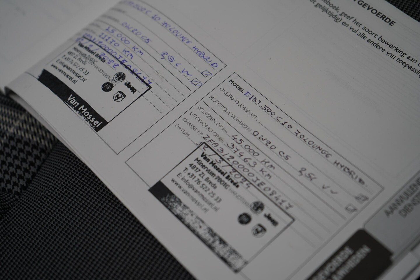 | APK | Bij aflevering |