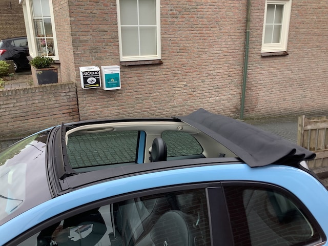 Zeer mooie schade vrije fiat 500 cabrio in het baby blauw .