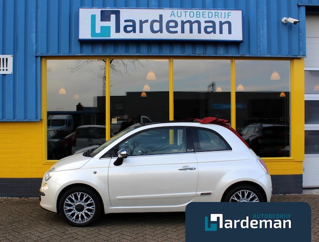 Op zoek naar een erg leuk uitgevoerde Fiat 500 cabrio automaat? Bekijk dan snel deze wit parelmoer met een rood dak!