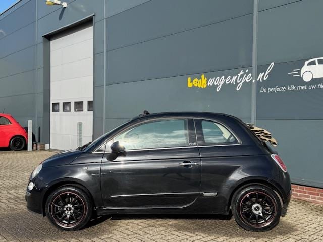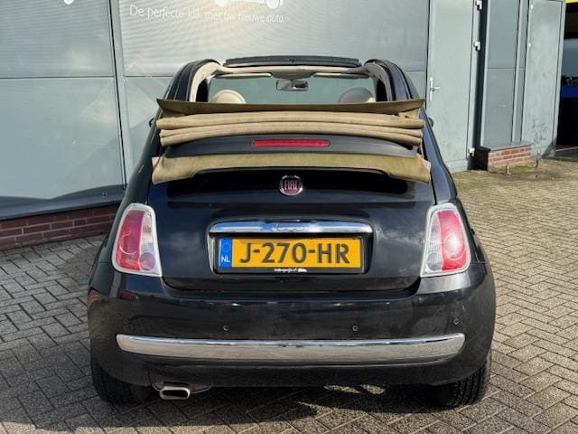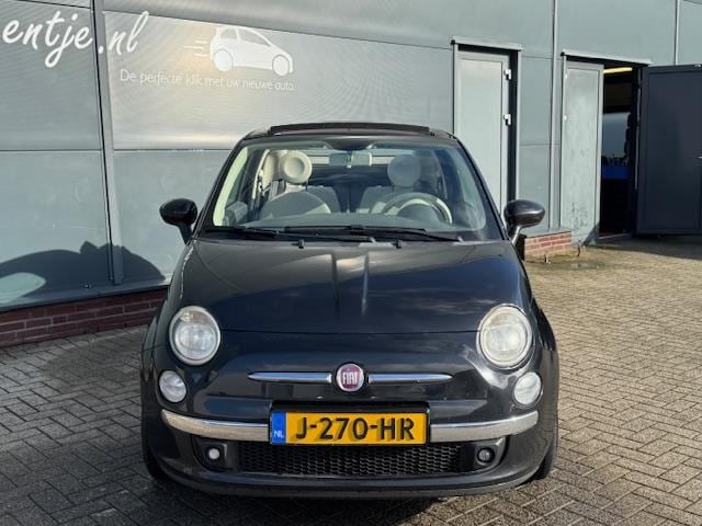 'n Leuk wagentje voor de beginnende automobilist, deze viercilinder Fiat 500 Cabrio. De zwarte velgen en zwarte lak vormen een fraaie combinatie met de beige elektrische kap. De auto is onder meer voorzien van airco, bluetooth, parkeersensoren achter en sier/stootlijsten in kleur op de flanken. Het grote scherm achteraf ingebouwd in plaats van de oorspronkelijk aanwezige radio.