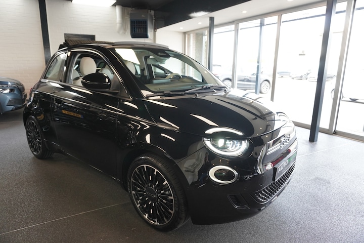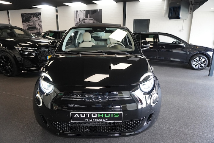 Te koop aangeboden: een luxe uitgevoerde Fiat 500e Cabrio La Prima uit 2022. Deze volledig elektrische cabrio combineert het iconische design van de Fiat 500 met moderne technologie, een stille aandrijving en een zeer complete uitrusting. De auto beschikt over een elektromotor van 87 kW en is voorzien van snellaadmogelijkheid tot 85 kW.