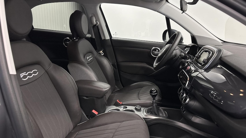 Je weet altijd waar je moet zijn, dankzij het navigatiesysteem. Aan boord van deze Fiat 500 X is een achteropkomend verkeer waarschuwing voor extra veiligheid. In een auto als deze kunt u niet zonder automatische airconditioning, zodat de temperatuur altijd goed is. Wisselen van radiofrequentie of veranderen van zender: de audiobediening op het stuur brengt alles onder handbereik. Met de DAB-ontvanger heeft u keuze uit talloze digitale radiozenders met de allerhoogste geluidskwaliteit. Met parkeersensoren achter, cruise control, keyless entry, lederen stuur, isofix-aansluiting en centrale deurvergrendeling met afstandsbediening is deze auto helemaal compleet.
