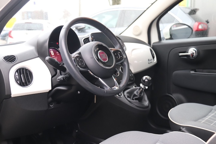 Prettig, altijd weten waar je moet zijn en hoe lang de rit nog duurt met het navigatiesysteem. Omdat u nu eenmaal niet overal ogen heeft, is deze Fiat 500 voorzien van een achteropkomend verkeer waarschuwing die registreert wanneer de afstand tot uw achterligger te krap is. Harder, zachter, aan, uit, volgende track, nieuwe zender... alle audiofuncties zijn regelbaar via de audiobediening op het stuur. Met de DAB-ontvanger heeft u keuze uit talloze digitale radiozenders met de allerhoogste geluidskwaliteit. Hoeveel ruimte u nog heeft bij het insteken? De parkeersensoren laten het weten! Da's gemakkelijk! Ook regensensor, cruise control, airconditioning, lederen stuur en centrale deurvergrendeling met afstandsbediening horen tot de voorzieningen op deze auto.
