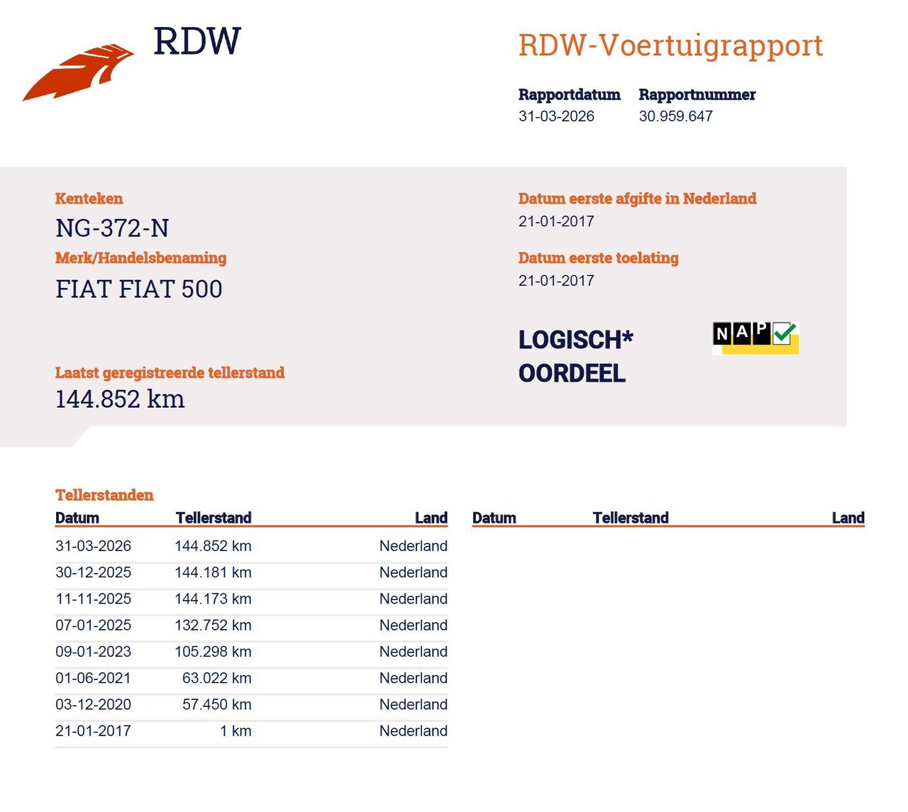 | Kilometerstand | 144.852 km |
