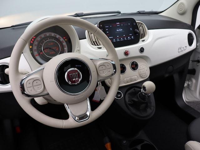 Met zijn stoere uiterlijk en indrukwekkende interieurruimte, is deze compacte auto de perfecte keuze voor elke rit Deze auto is bijna nieuw, ondanks dat hij uit 2021 komt; hij heeft slechts 36310 kilometer afgelegd. Hebt u een vlotte rijstijl? Dan is deze Fiat met zijn zuinige maar pittige motor geknipt voor u. Het glazen panoramadak laat meer licht binnen in het interieur en zorgt voor een magnifiek uitzicht naar buiten. In deze auto profiteert u onder andere ook van: 15 inch lichtmetalen velgen, in delen neerklapbare achterbank en snelheidsafhankelijke stuurbekrachtiging. Vanaf elke plek contact maken met deze auto: dat kan met behulp van remote services, die u simpel activeert met uw smartphone. Een optie die de veiligheid verhoogt, is de bediening vanaf het stuur van het audiosysteem (met dab-radio!). Superstrak parkeren wordt een eitje dankzij de parkeersensoren. Een stabiele en comfortabele snelheid houdt u feilloos aan met de cruise control. Met de aanwezige airconditioning bepaalt u zelf het binnenklimaat. Ook lederen stuur en centrale deurvergrendeling met afstandsbediening zijn aan boord. In de Fiat 500 heeft uw veiligheid en die van uw omgeving prioriteit. De Brake Assist haalt het maximum uit de remkracht van deze Fiat 500 als zich een noodsituatie voordoet. Hebt u interesse in deze auto? Neem nu contact met ons op en we zetten hem klaar voor een proefrit.