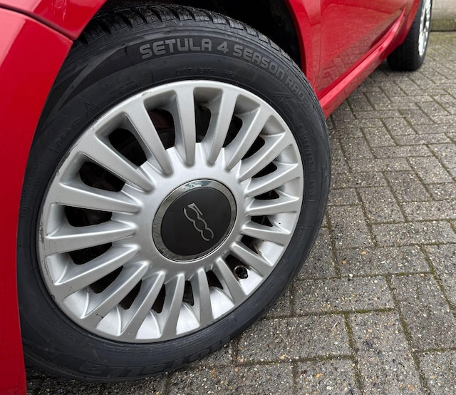 Bovenstaande Fiat 500 lounge is uitgevoerd met een 1.2 benzine, 4-cilinder motor die een vermogen levert van 69 pk. De auto beschikt over elektrische ramen en spiegels, radio met usb/aux-aansluiting, centrale vergrendeling, boordcomputer, panorama dak met zonnewering, Blue & Me spraakbesturing, lederen stuur met stuurbediening, mistlampen, City stuur (wat zorgt voor een dubbele stuurbekrachtiging), ESP, isofix, parkeersensoren, spiegels in de lakkleur, airco en 15 inch originele aluminium velgen.