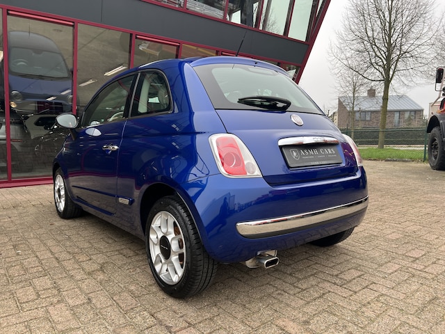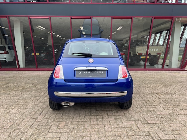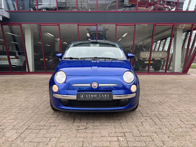 Super leuke Fiat 500. De mooie combinatie van azuurblauwe lak, het glazen panoramadak, aluminum spaakvelgen en een crémewit stoffen interieur met zwart/antraciet accenten maken het een chique-sportieve verschijning.