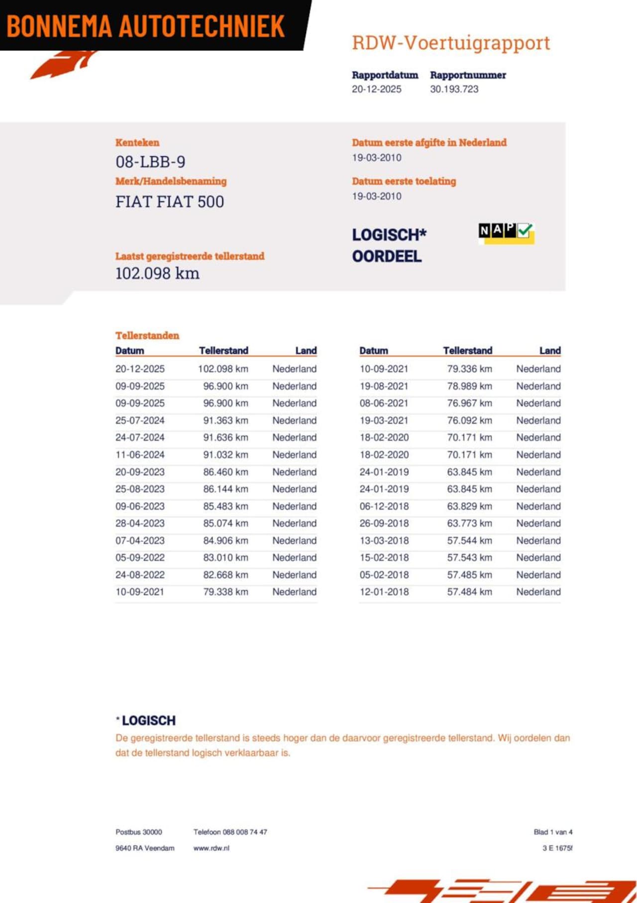 | Kilometerstand | 102.098 km |
