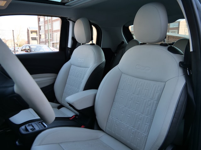 Bent u op zoek naar een elektrische auto? Dan is deze Fiat 500 een uitstekende keuze. Met de elektromotor zoeft u fluisterzacht over de weg. De verwarmbare voorstoelen zijn een heerlijke extra optie, waarmee u uzelf en uw bijrijder een groot plezier doet. Het interieur baadt in een zee van licht door het glazen panoramadak. Bij de zeer complete uitrusting van deze auto behoren ook 17 inch lichtmetalen velgen, Full LED koplampen, sportinterieur, donker getint glas achter, in delen neerklapbare achterbank en LED-achterlichten.