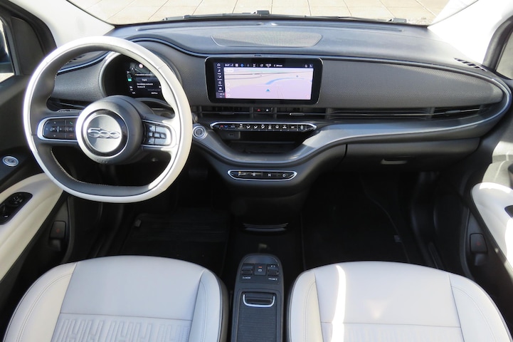 Topprestaties zonder emissies: de Fiat 500 C is een elektrische auto zonder compromissen. Wat een rijervaring, die elektromotor. Forse actieradius, nul uitstoot en heerlijk pittig rijgedrag! De lederen bekleding benadrukt de luxe uitstraling van deze auto. In de verwarmbare voorstoelen zitten is elke keer een welkom gevoel. Met het elektrisch bedienbare dak verander je deze cabrio in luttele seconden in een auto voor zonaanbidders. Bij de zeer complete uitrusting van deze auto behoren ook 17 inch lichtmetalen velgen, LED koplampen, in delen neerklapbare achterbank, LED-achterlichten, snelheidsafhankelijke stuurbekrachtiging en windscherm.