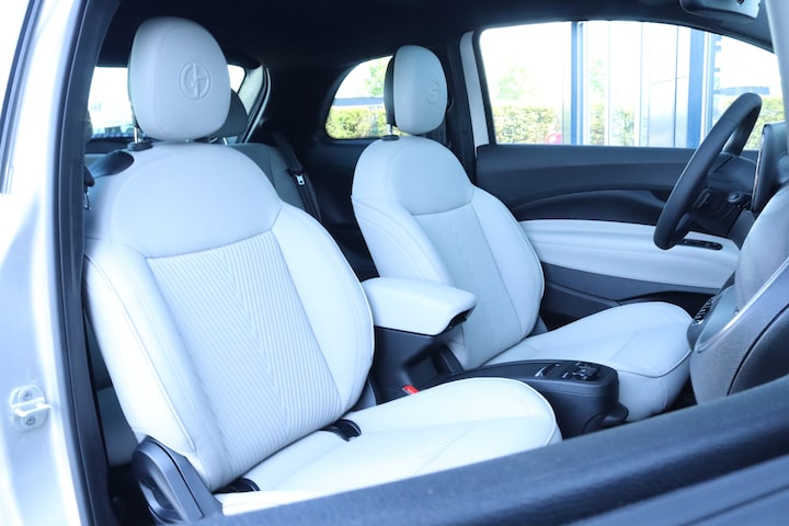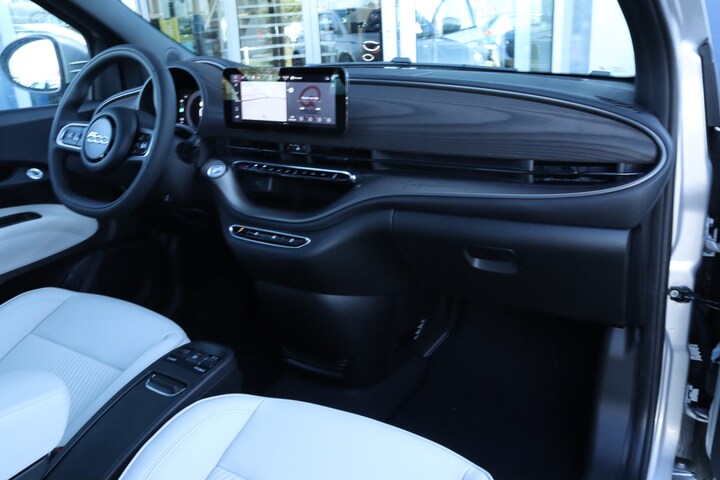 Hij levert uitstekende prestaties en doet dat met zorg voor het milieu. Maar tegelijk is de Fiat 500E ook gewoon een auto die u volop ruimte en comfort biedt. Stil en stevig optrekken zonder extra uitstoot? De elektromotor zorgt ervoor! Het gaat hier om een nieuwe auto, die uit voorraad leverbaar is. De verwarmbare voorstoelen zijn een heerlijke extra optie, waarmee u uzelf en uw bijrijder een groot plezier doet. Overdag een weidse zichthoek en 's avonds het lichtspel in de binnenruimte: dat geeft het glazen panoramadak! Bij de uitrusting van deze Fiat horen onder meer 17 inch lichtmetalen velgen, Full LED koplampen, extra getint glas, in delen neerklapbare achterbank, LED-achterlichten en snelheidsafhankelijke stuurbekrachtiging. Altijd de benodigde functies in beeld? Het digitale dashboard zorgt ervoor. Ongelukken of parkeerschade? Dat gebeurt u niet meer, met de achteruitrijcamera. Met adaptive cruise control houdt deze auto automatisch afstand tot uw voorligger. Na een lange werkdag in de file: daar zit niemand op te wachten. Gelukkig helpt de file assistent een handje. Het radarsysteem meet de ruimte tot de voorligger en bewaakt de juiste afstand. Stilstaan? Dan remt en stopt de auto vanzelf. Met Connected Services wordt iedere rit nóg veiliger. Deze auto is voorzien van premium audiosysteem, full map navigatiesysteem, automatische airconditioning, draadloos opladen, DAB ontvangst en regensensor. De geavanceerde technologie in deze Fiat is in staat om onderweg het verkeer om u heen te monitoren en er op te reageren. Zo hebt u als het ware een automatische co-piloot aan boord. Wat deze auto ook kan, is lezen. Hij 'leest' voor u de verkeersborden tijdens de rit en attendeert u erop door ze op het dashboard te projecteren. Het Lane-keeping systeem garandeert dat u zich niet onverhoeds buiten de lijnen van de rijstrook begeeft. Voor meer veiligheid detecteert deze auto het risico van een aanrijding tijdig via de forward collision warning. De auto is ook uitgerust met dodehoekdetectie, hill hold functie, brake assist, vermoeidheidsherkenning en bandenspanningcontrolesysteem. Vanzelfsprekend leveren wij deze nieuwe auto met volledige fabrieksgarantie. We maken graag een afspraak met u om deze 500E bij ons te komen bekijken.