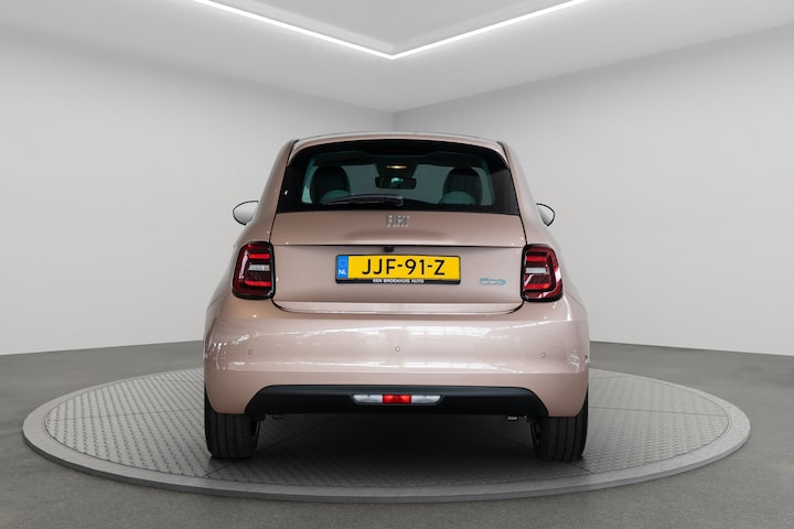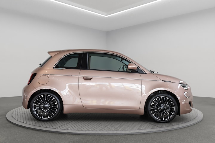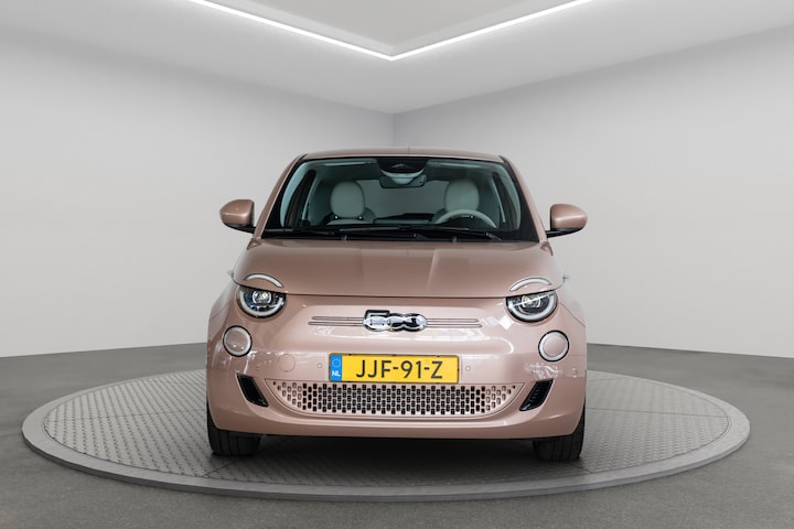 Kijk naar de geraffineerde lijnen. Verbaas u over de soepele aandrijftechniek. De elektrische Fiat 500e trakteert u op een onvergelijkbare rijervaring. De voordelen van de elektromotor spreken voor zich: stil, schoon en snel! Deze auto is bijna nieuw, ondanks dat hij uit 2025 komt; hij heeft slechts 3507 kilometer afgelegd. Een weldaad voor u en uw bijrijder: deze Fiat 500e heeft verwarmbare voorstoelen. Bij de uitrusting van deze Fiat horen onder meer 17 inch lichtmetalen velgen, Full LED koplampen, extra getint glas, in delen neerklapbare achterbank, LED-achterlichten en snelheidsafhankelijke stuurbekrachtiging. Uw rit wordt comfortabel en veilig gemaakt door het digitale dashboard dat alles projecteert wat u wenst in de digitale wereld van mobiliteit. Hoeveel ruimte heeft u nog bij het inparkeren? De achteruitrijcamera brengt helder in beeld wat zich achter de auto bevindt en geeft een geluidssignaal. Adaptive cruise control is veilig en comfortabel. De snelheidsregelaar houdt automatisch afstand tot het voertuig dat voor u rijdt. De aanwezige file assistent meet de afstand tot uw voorligger en zorgt voor een veilige afstand. Staat het voor u opeens stil? Dan zorgt het systeem dat de auto ook stopt. Oliepeil, bandenspanning, sloten en andere functies zijn via een speciale app overal te checken dankzij Connected Services. Ook full map navigatiesysteem, automatische airconditioning, draadloos opladen, DAB ontvangst, regensensor en keyless entry horen tot de voorzieningen op deze auto. Deze Fiat biedt u niet alleen comfort en rijplezier, maar ook veiligheid. Actieve veiligheidssystemen houden voor u de weg in de gaten en reageren op onvoorziene situaties voordat u dat kunt. Dat de auto steeds meer taken van de bestuurder overneemt, merkt u bijvoorbeeld aan het systeem voor verkeersbord-detectie in deze auto. Voorzien van het Lane-keeping systeem. Ofwel: blijf automatisch in je baan. Mindert een voorligger onverwachts te veel vaart, dan komt de forward collision warning in actie en waarschuwt meteen. De veiligheid van deze auto wordt verder verhoogd door dodehoekdetectie, hill hold functie, brake assist, vermoeidheidsherkenning en bandenspanningcontrolesysteem. Ook een elektrische auto bewijst zichzelf het beste met een proefrit. Neem contact op en we maken meteen een afspraak!