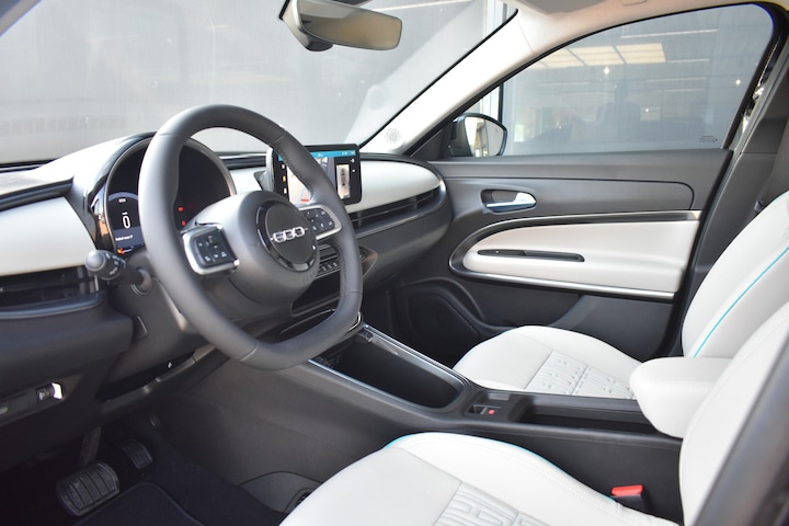 Interieur: Kunstlederen ivoorkleurige stoelbekleding met FIAT